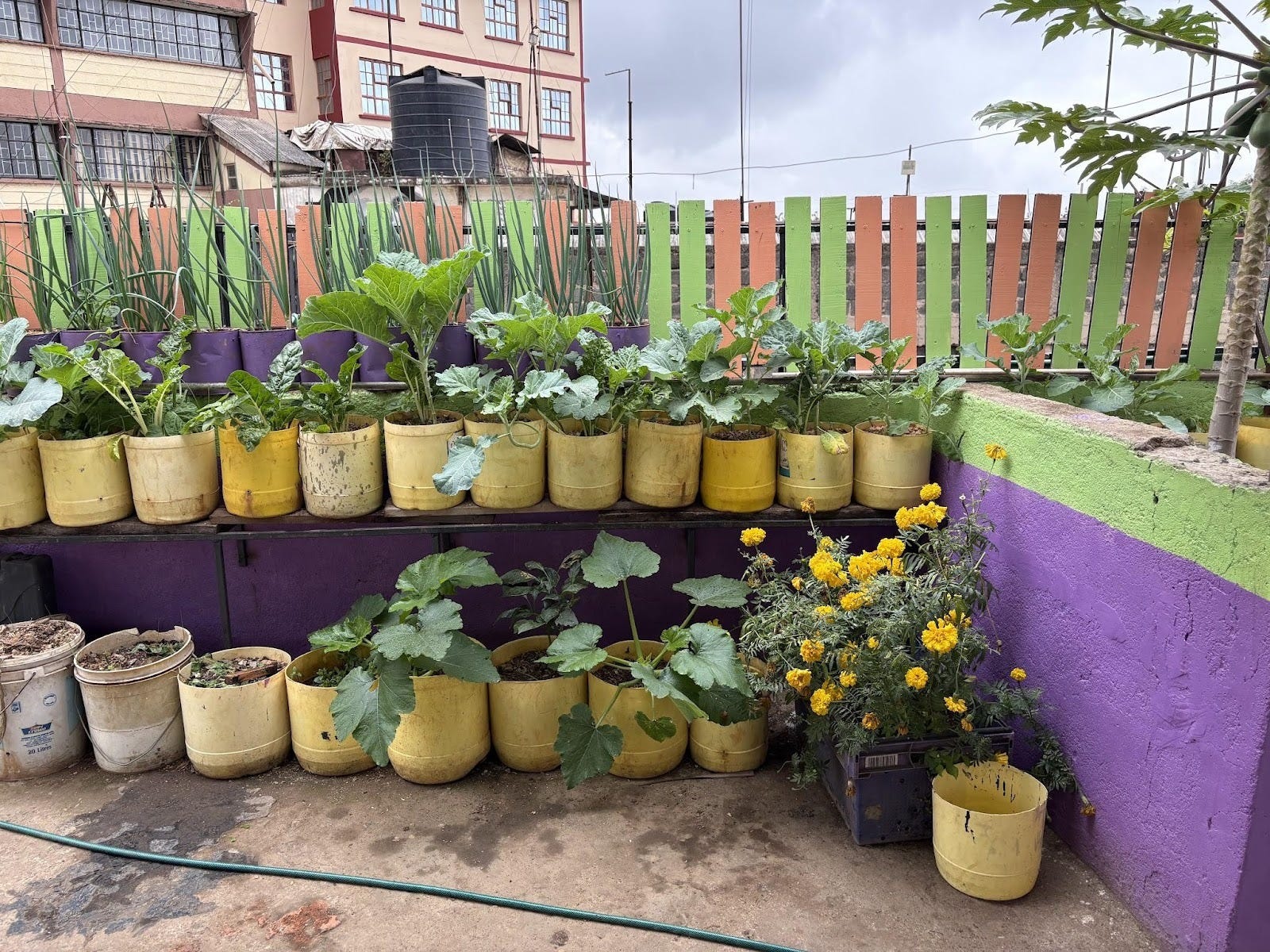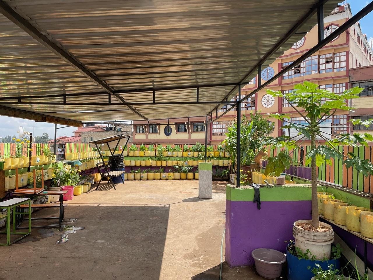 The rooftop garden did not do very well this year because we had long stretches of time when our water supply was cut. However, the addition of 25 egg chickens in July enabled us to increase protein intake for our students in the second half of the year.